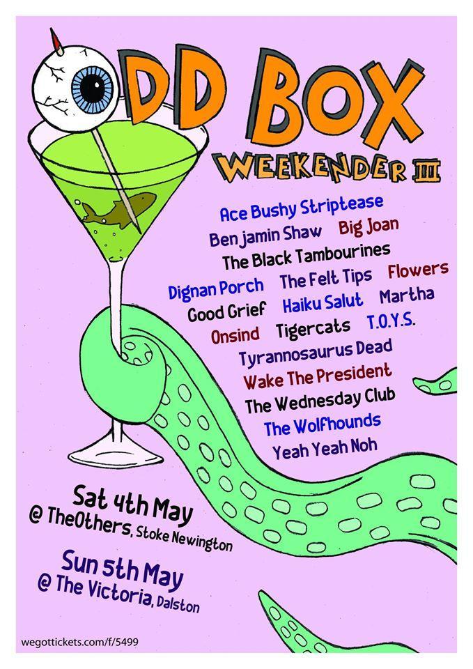 We’ll be DJing at the third annual Odd Box Records Weekender on Sunday 6th May. The Black Tambourines headline with support from Joanna Gruesome, The Felt Tips, Flowers plus many more at The Victoria.