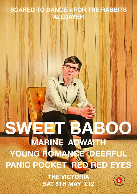 Sweet Baboo headline the Scared To Dance and For The Rabbits alldayer on Saturday 5th May at The Victoria.